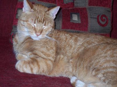 I have two cats. Sebastian is an orange, domestic tabby who is very slight in build, just turned seven years old and Sidney, a beautifully marked black, gray and white large cat who turned six in May.
